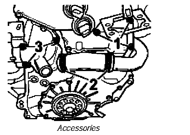7. Install coolant temperature regulator housing. To do this, position 2 M6 x 120 and 1 M6 x 23 fastening screws -3- and tighten to tightening torque Tightening torque 6 ft. lbs.. Fit 3 M6 fastening screws on sheetmetal holder for run-on pump -1- and tighten Tightening torque 6 ft. lbs.. Fit coolant hose and clamps -2-.