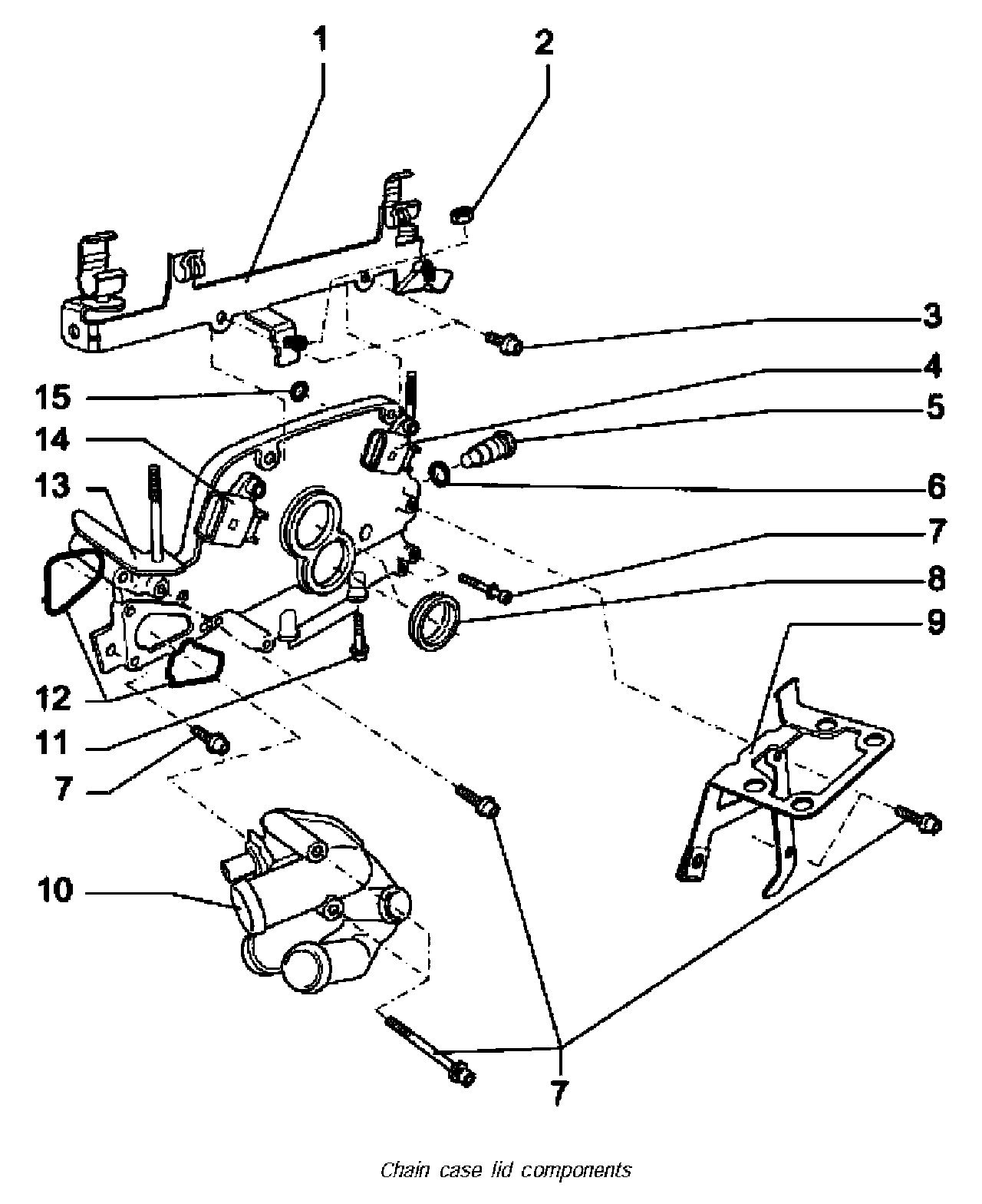 2. Apply a thin coat of sealant 000.043.300.33 evenly to the sealing surfaces (don't forget the contact surfaces for the cylinder head gasket) --> Sealant application. Mount chain case lid immediately and tighten fastening screws.
