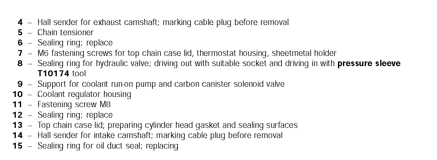 1. Pull both cable plugs off camshaft hall senders -4 and 14-.