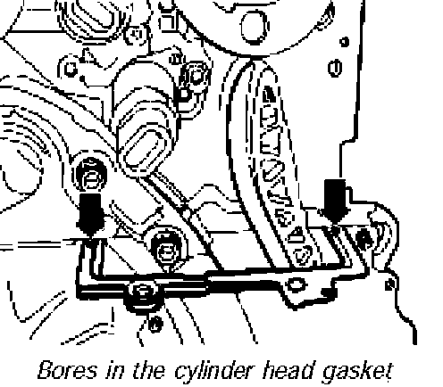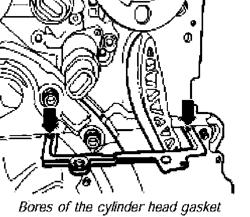 3. Clean all sealing surfaces on the chain case lid and cylinder block and clean off any residual sealant on the cylinder head gasket. To do this, remove any sealing paste from the bores on the cylinder head gasket -arrows-.