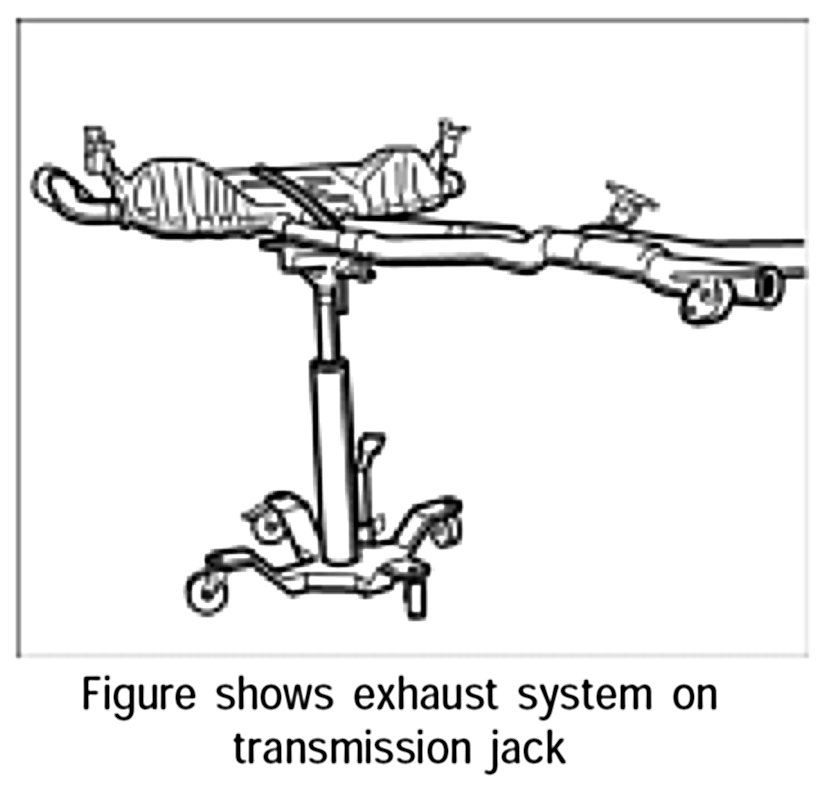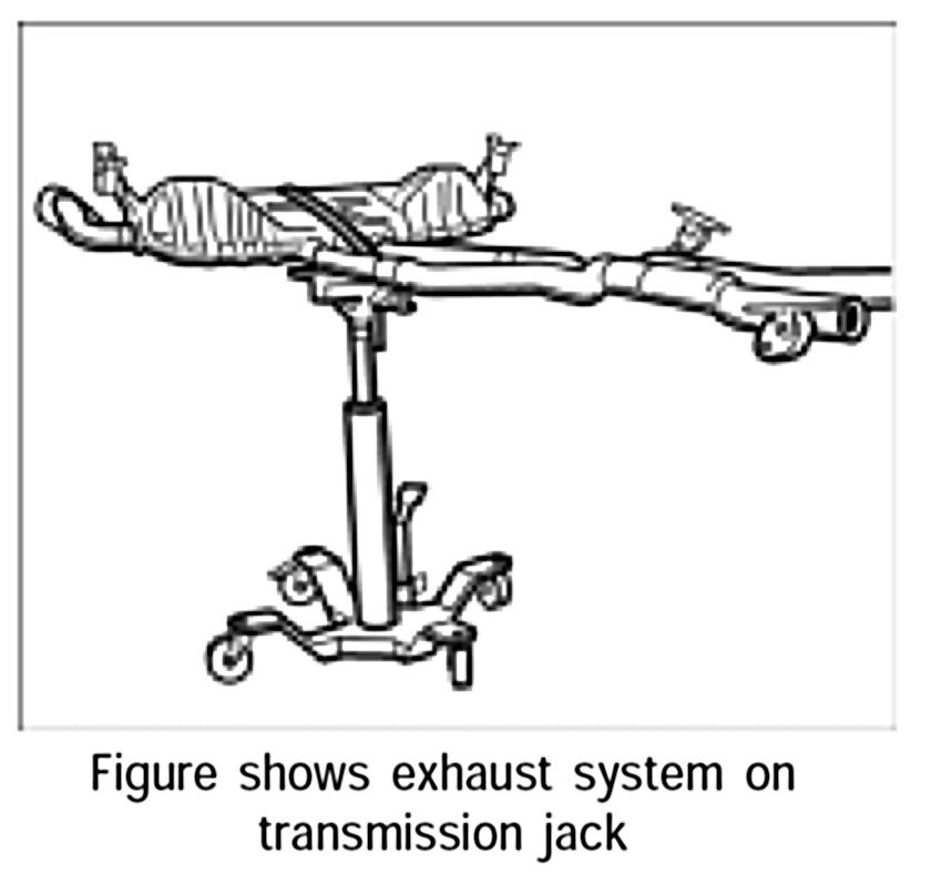 1. Position exhaust system under the vehicle supported by a transmission jack or another person.
