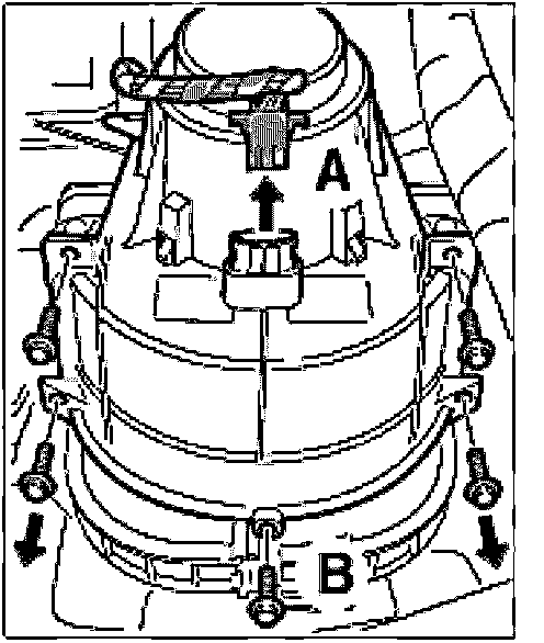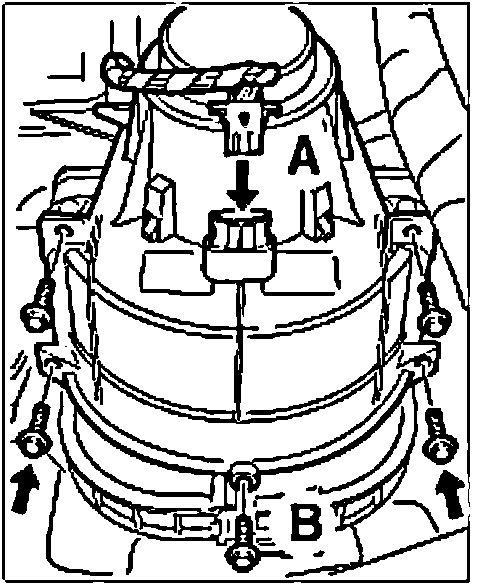 2. Remove the five fastening screws -B-.