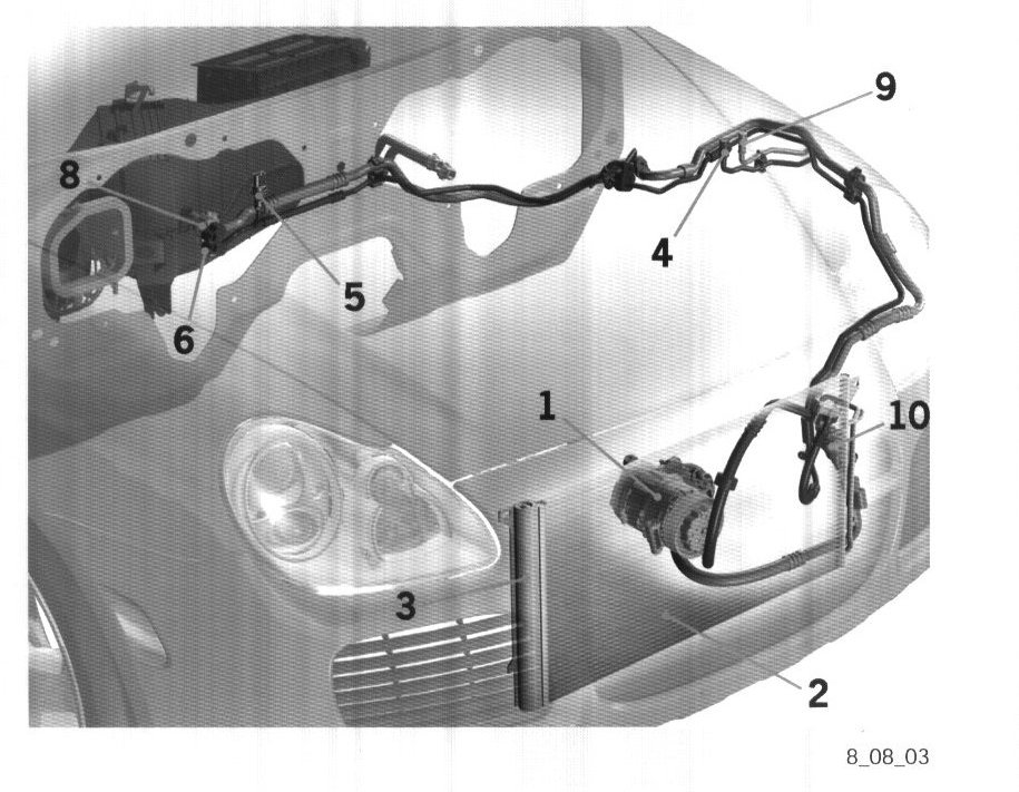 The cold air circulation in the Cayenne is set up so that the compressor and the expansion valve are the classic separations between high and low pressure sides.