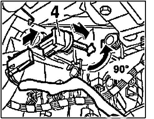 b. Slide in the temperature sensor -4- into the heating/air-conditioning unit and turn 90°.