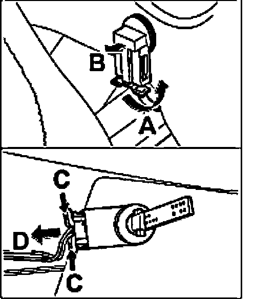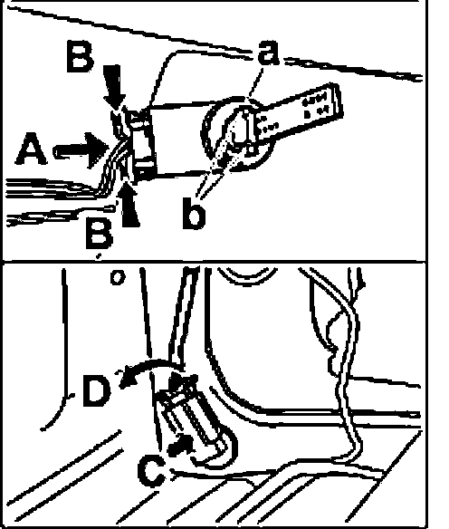 3. Insert temperature sensor -arrow C- and turn it to the inside of the vehicle -arrow D- until the locking tabs -b- engage.