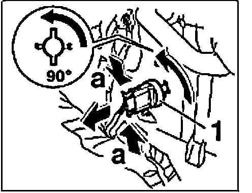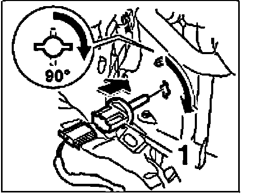 b. Slide in the temperature sensor -1- into the heating/air-conditioning unit and turn 90°.