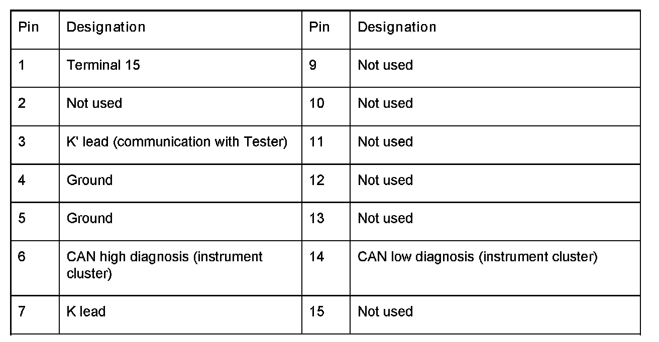 - Pin 1 Power supply terminal 15/fuse carrier at left of dashboard, F 51)