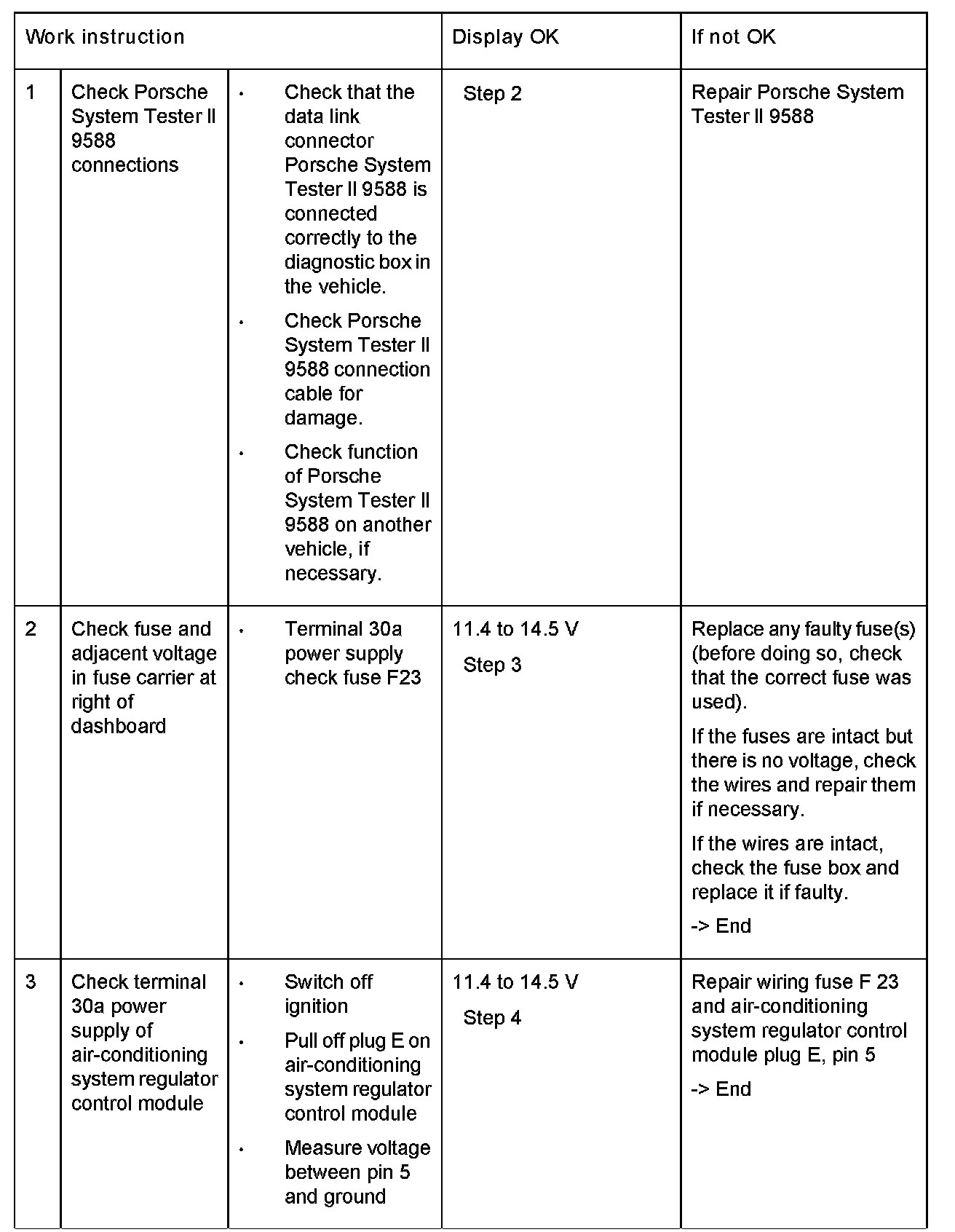 - Porsche System Tester II 9588 and the air-conditioning system regulator control module are not connected.