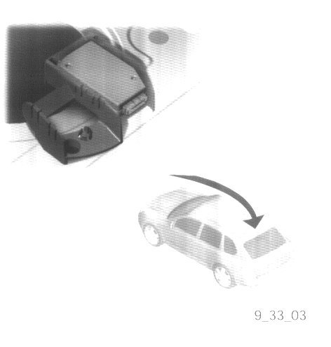 A magnetic field sensor located beneath the rear seat detects the Earth's magnetic field. The sensor module compensates tot magnetic interference from the vehicle and transmits the data via the CAN-Bus to the instrument cluster. Under the menu item "Settings" in the instrument cluster there is an additional menu item, "Compass." It needed, automatic calibration or zone setting can be started using the switch on the steering column lever.