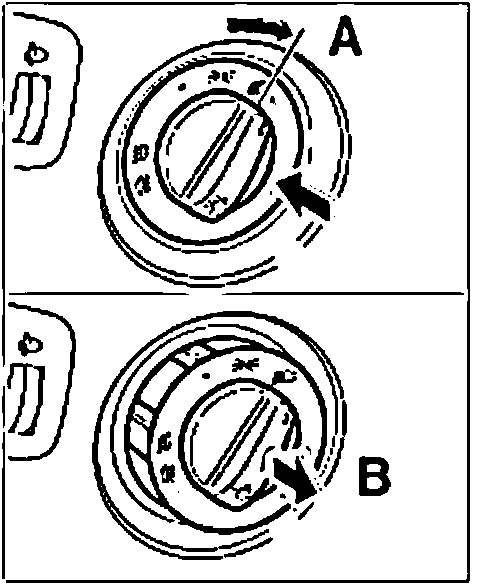 1. "A" Press in rotary knob on the light switch (not to the stop) and turn the switch clockwise.