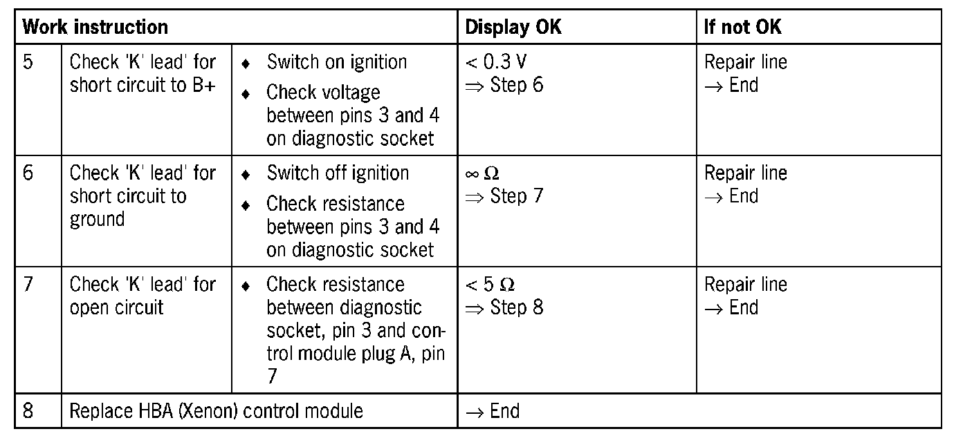 - If it is not possible to communicate with the HBA control modules in the headlight, this may be caused by incorrect coding, e.g. both headlights are coded for one side. Remedy: Remove one headlight and restart connection setup using the Tester. Code control module correctly.