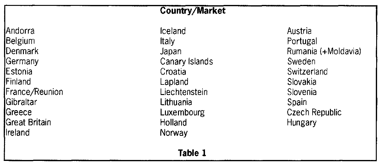 2. The country version of the vehicle "does not" correspond to one of the countries listed in Table 1.