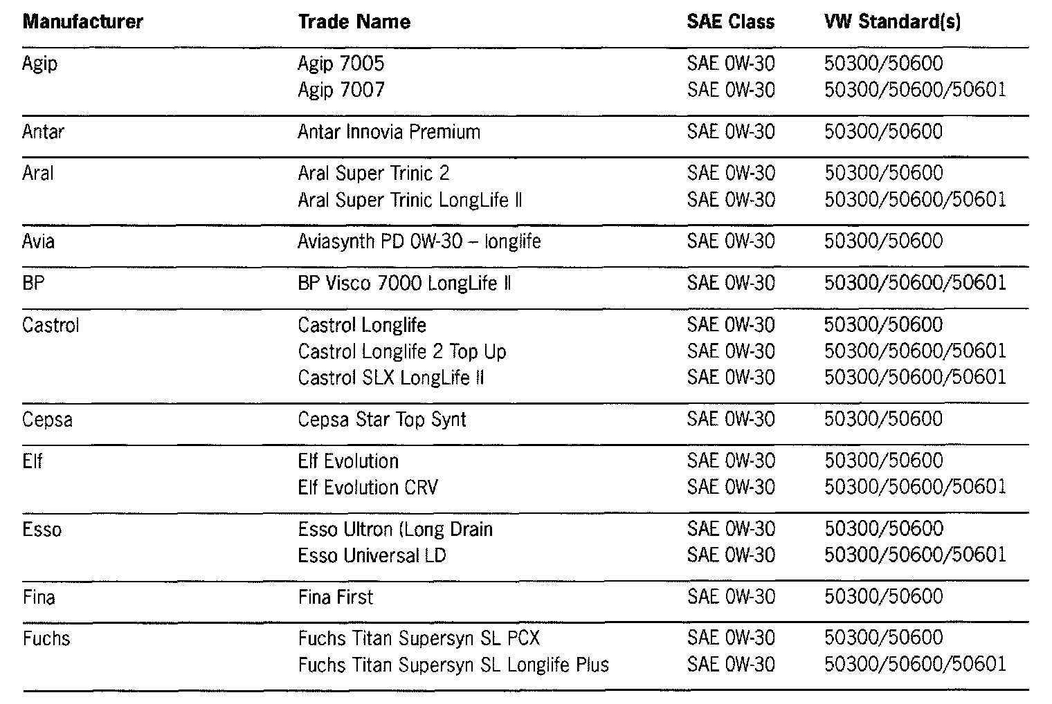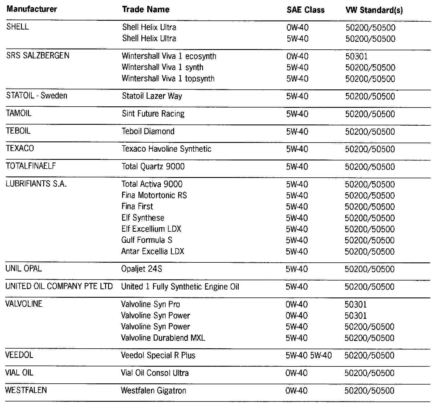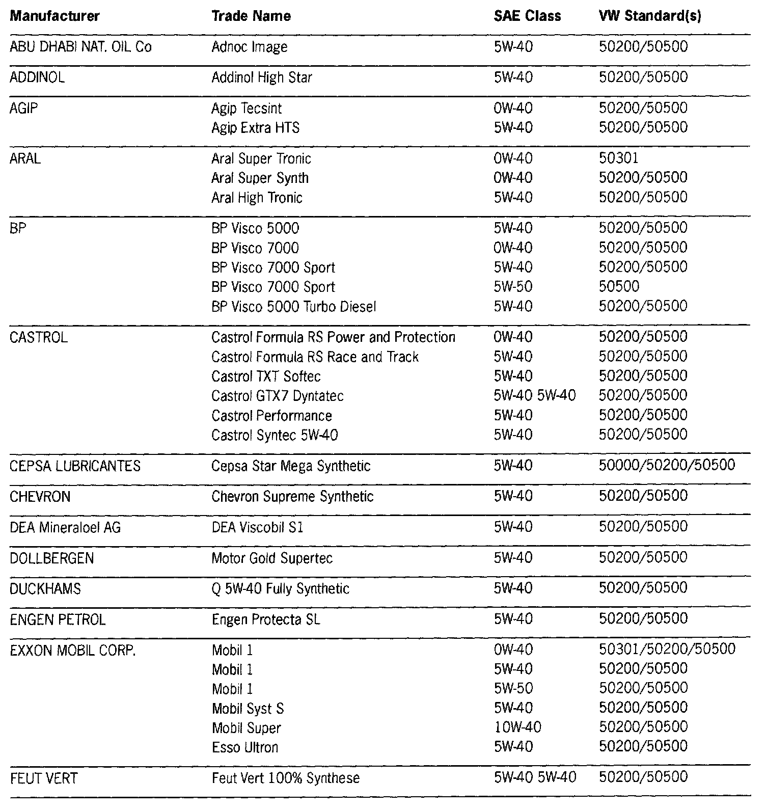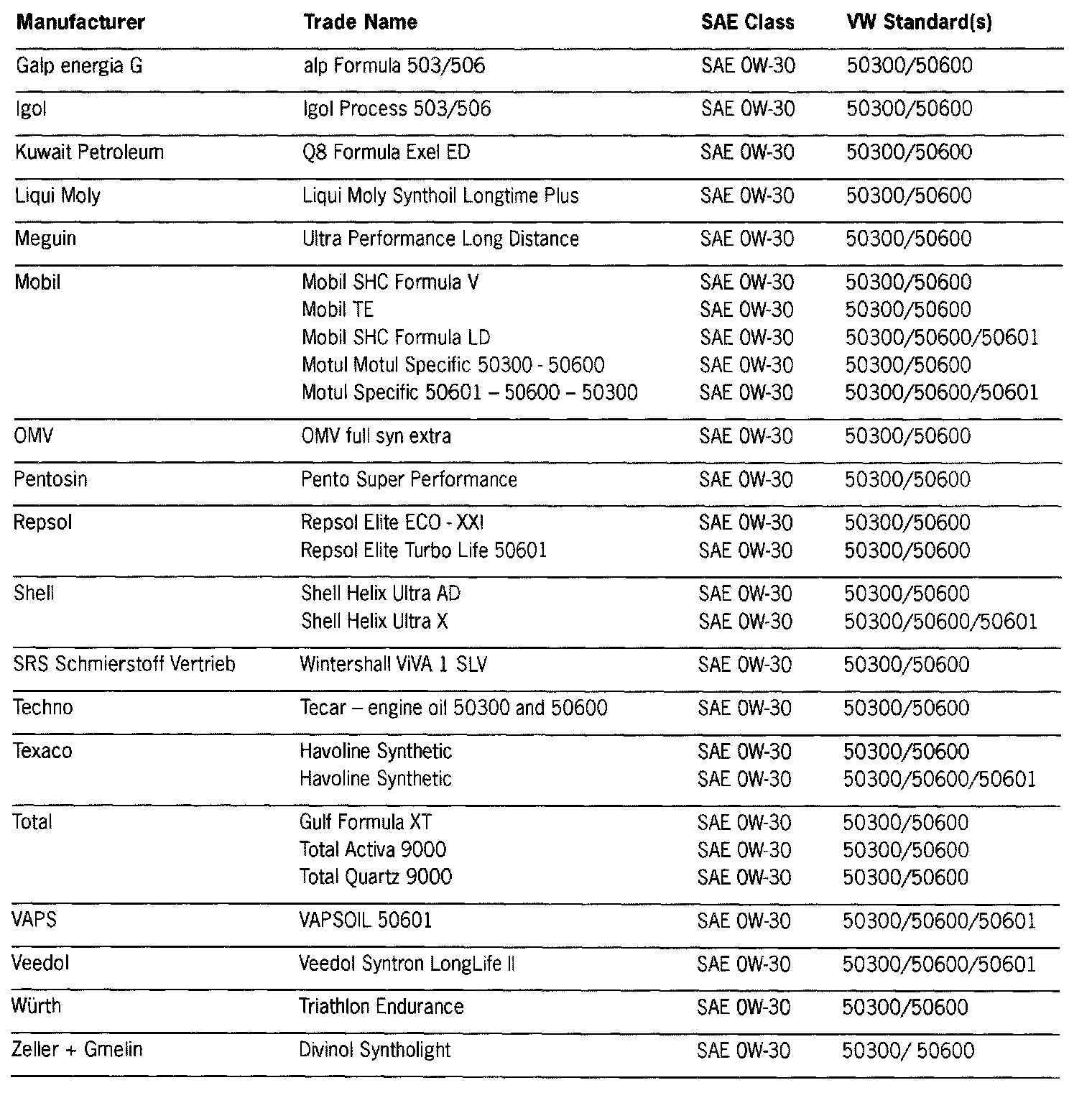 1.2 If an engine oil not in accordance with the VW specification "50300" was used: