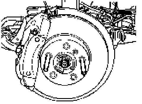 1. Screw the -assembly aids (threaded pins for mounting wheel)-, instead of 2 wheel bolts, into the wheel hub before mounting or removing wheel. During removal, first remove the 3 remaining wheel bolts and remove the wheel carefully, without touching the brake discs.