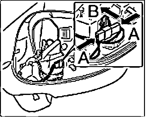 11. Connect the connector to the fog lights "arrow A" until the locking tabs "B" engage audibly.