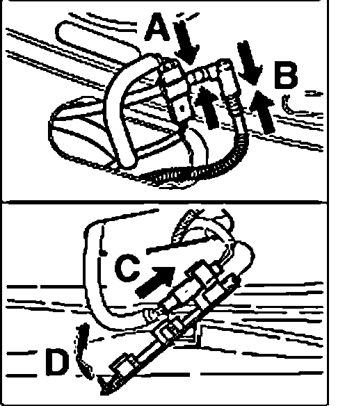 4. Squeeze plug lock "arrows B" and pull off the plug "arrow C".