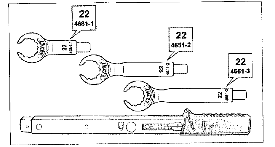 - Open ring wrench angled various lengths.