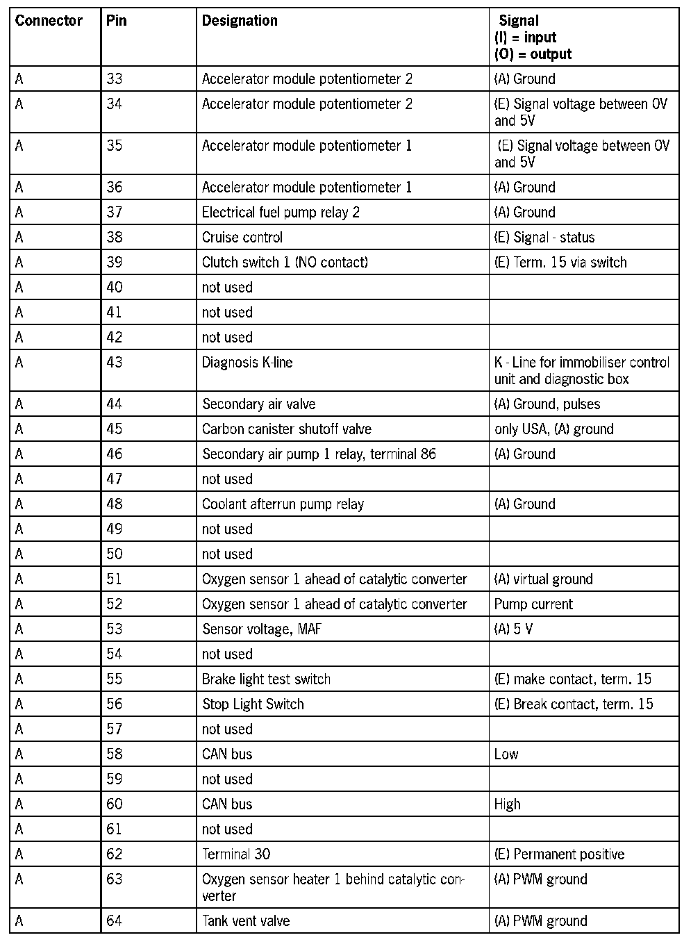 Cayenne V6 Connector A on control module DME 7.1.1 - 81-pole