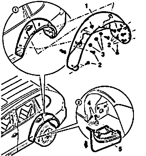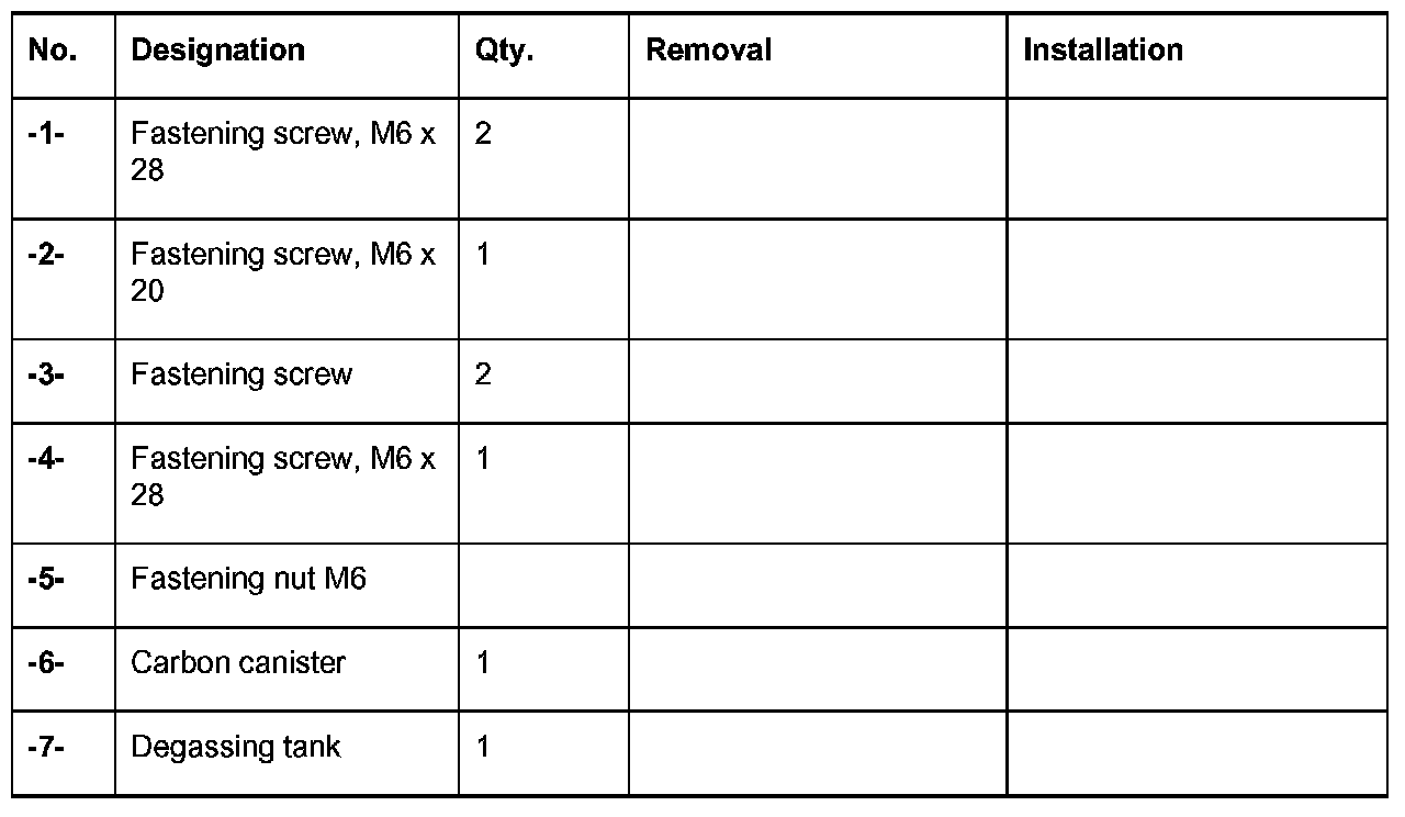 The following exploded drawing shows the attachment of the fuel filler neck and carbon canister in the right wheel housing.