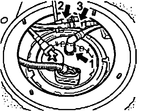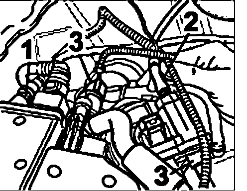 8. Carefully remove the fuel supply -1- at the right connection unit and loosen the two disconnection points -2 and 3-. Also remove line (not shown here) in vehicles with auxiliary heating (auxiliary heater).