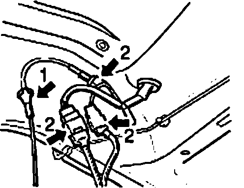 19. Carefully remove the sheetmetal clips of the hand brake cable on the fuel tank.