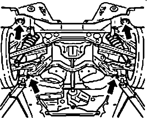 1. Position the vehicle at the take-up points provided using a lifting platform so that trim panels and the suspension subframe can be removed.