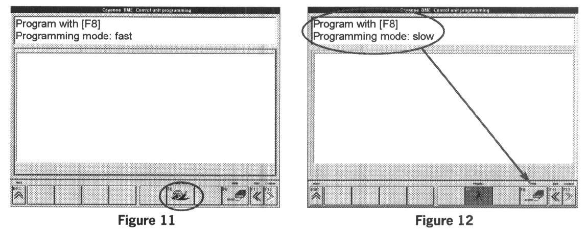 13. Select "F6" (picture of a snail) so that "Programming mode: slow" appears at the top of your screen then select "F8" to continue with programming (Figures 11 & 12).