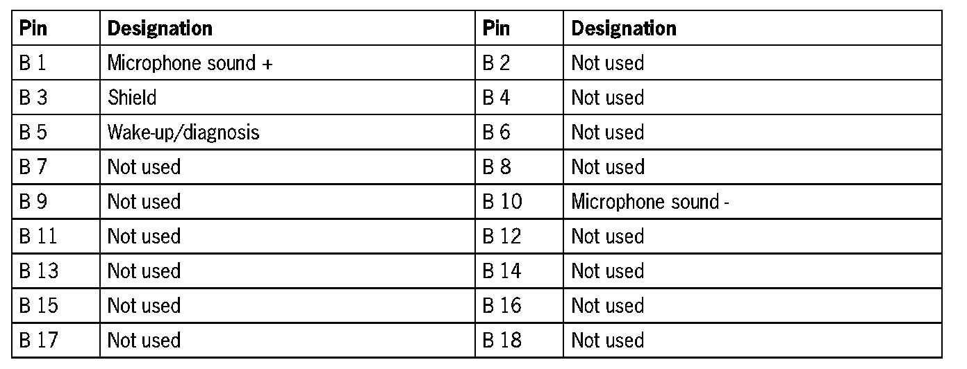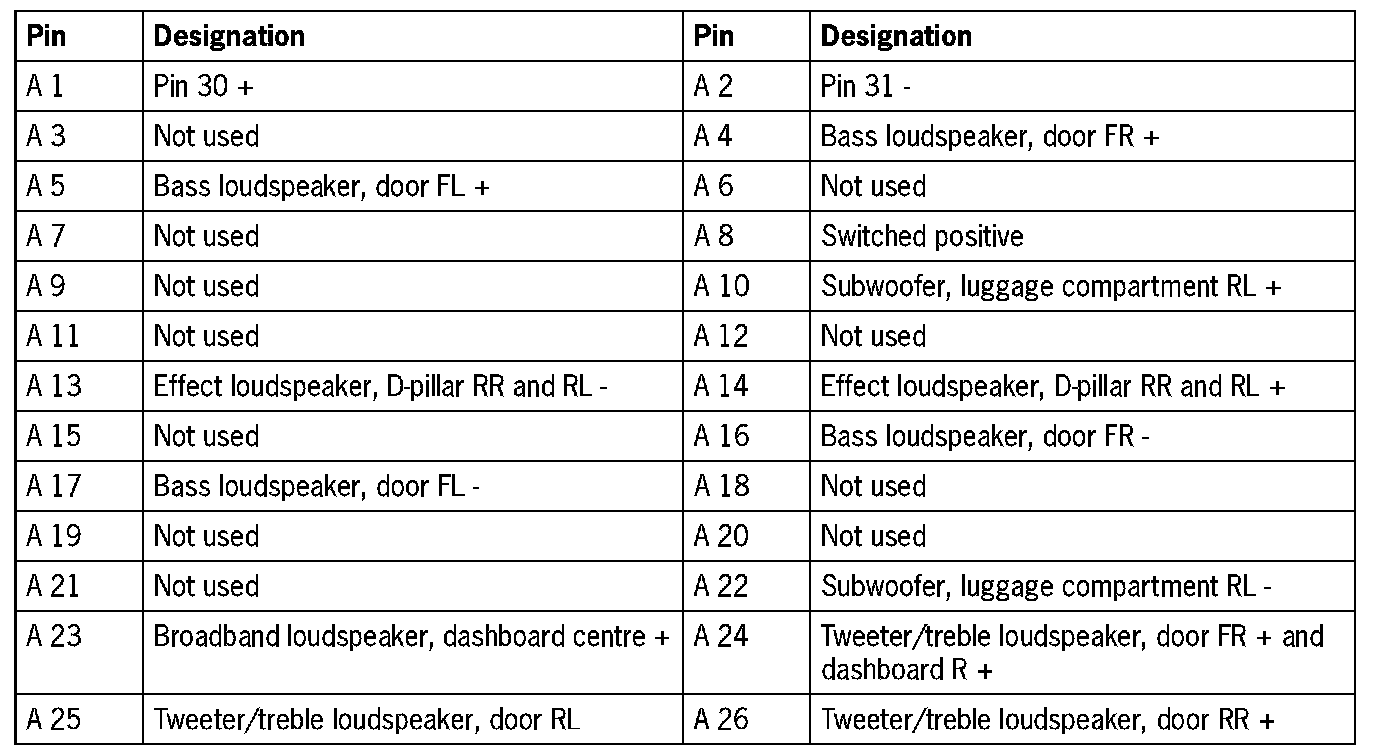 Connector pin assignment - external BOSE amplifier