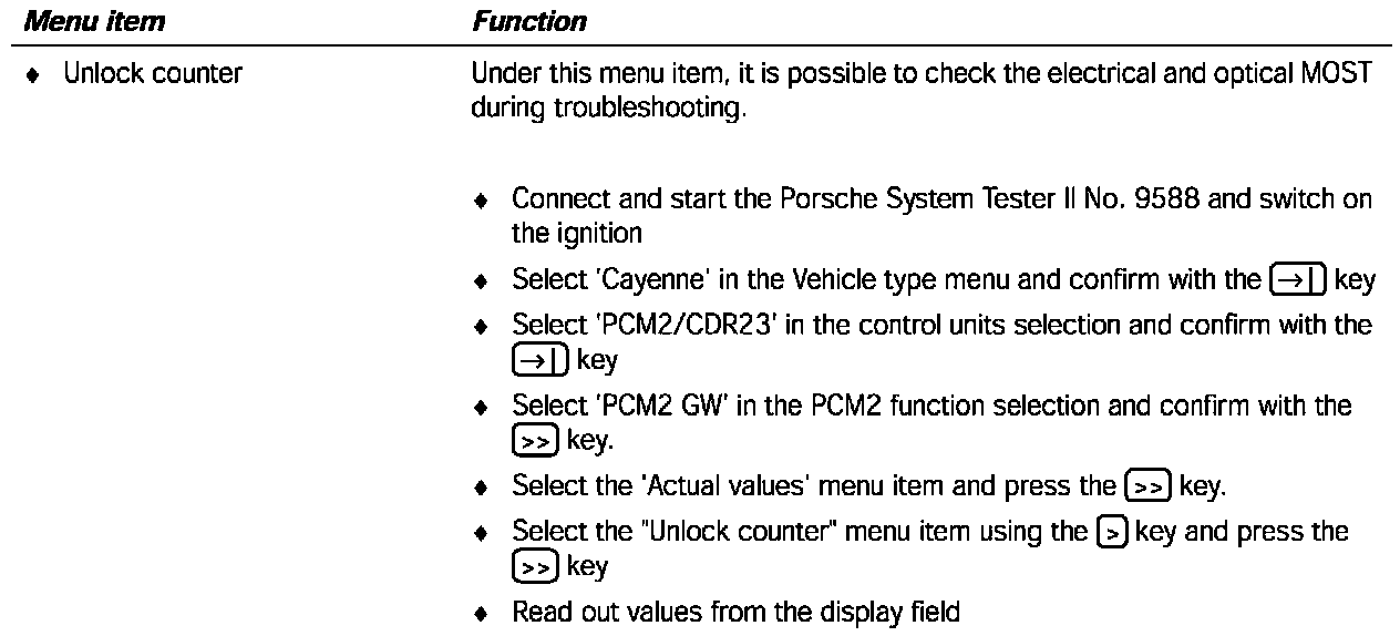 It is possible to read out the unlock counter under the 'Actual values' menu item.
