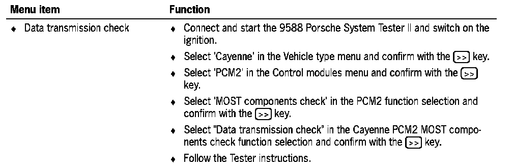 - When there is a customer complaint or identifiable problems but no fault code entries, firstly the 'MOST component check' is to be selected in the PCM2 function selection menu and then the 'MOST system check' is to be carried out.