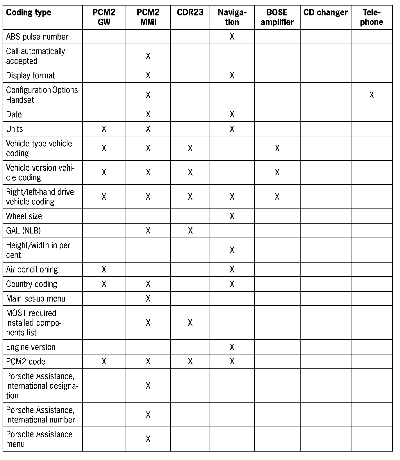- When the PCM2 is replaced, the coding must be performed in accordance with the connected MOST control modules.