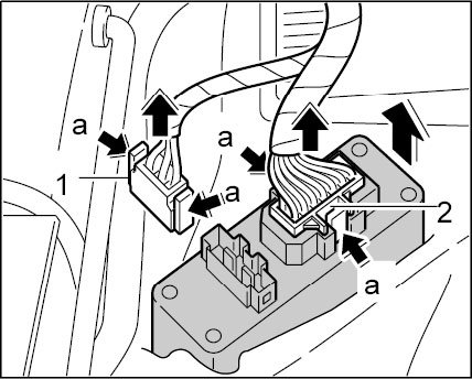 3. Release plug -2- and remove from control unit -Arrows a-.