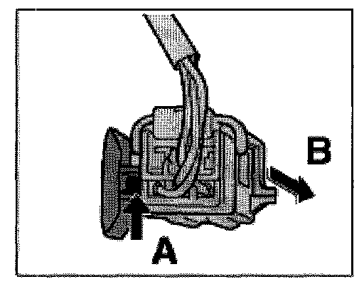 8. Release connecting socket -arrow A- and pull it off the clip -arrow B-.