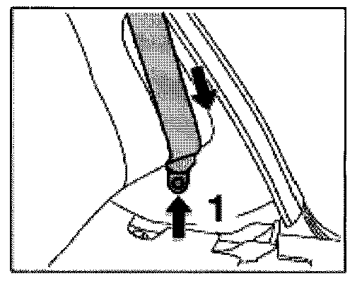 1. Push three-point belt through the belt guide from bottom to top -arrow A-.