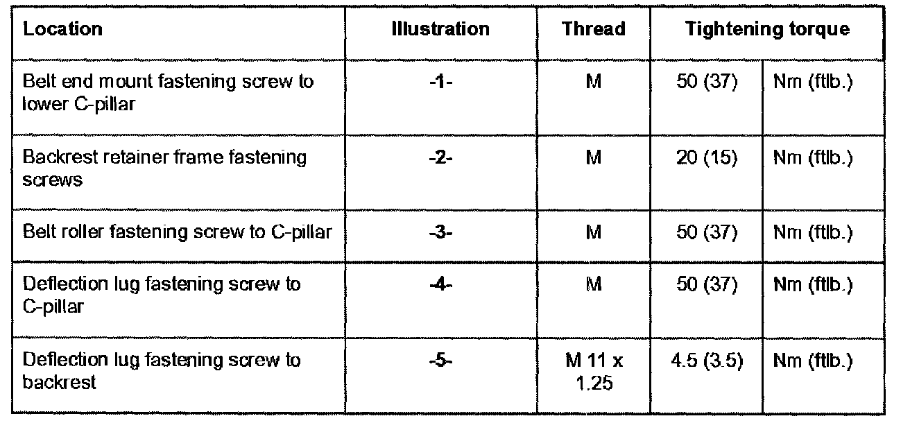 10. Unscrew fastening screw -4- and remove the seat belt.