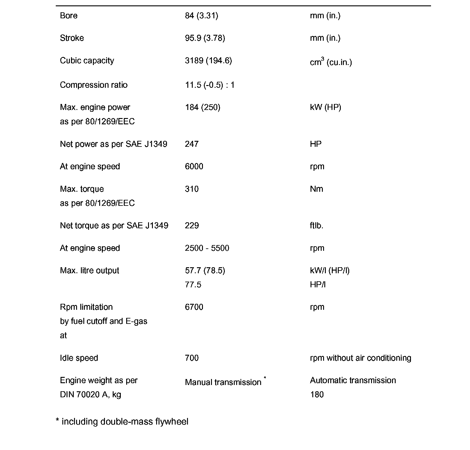 Technical data for BFD engine (Cayenne)