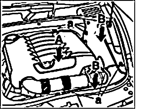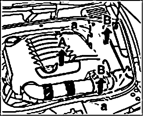 17. Fit engine cover-arrow A- until locking tabs are felt to engage.