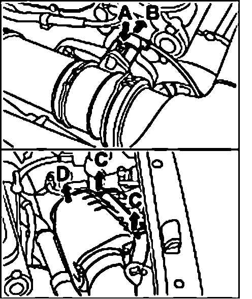 4. Release air cleaner cover -arrow C- and pull upwards -arrow D-.