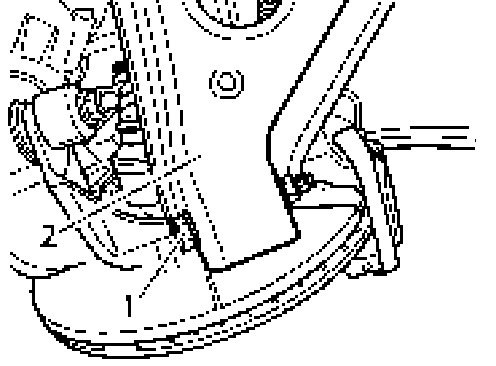 4. Loosen the lower control arm -2- at the attachment -1- and take out the wheel bearing housing with the drive shaft (a second worker is required for this!).
