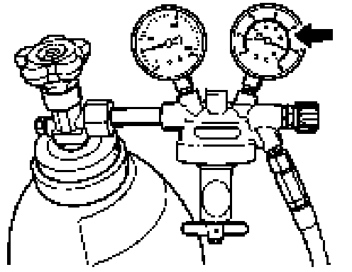 2. Set the -pressure gauge unit (flow limiter)- to approximately 201/min .