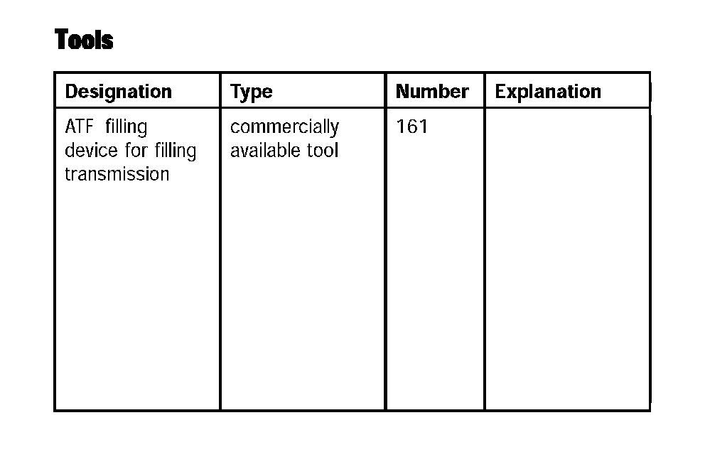 5. Fill with oil using the ATF filling device for filling transmission 161 to the lower edge of inspection plug opening-A-. Tightening torque: 1.25 l +0.35 l