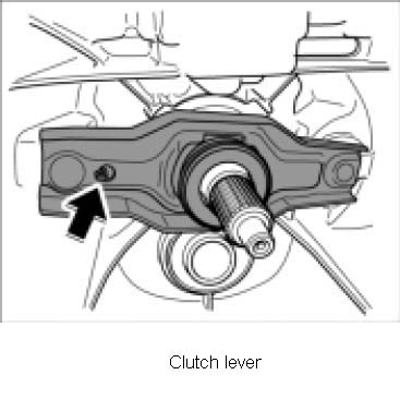 1. Remove clutch lever with release bearing. To do this, press the retaining spring -arrow- out of the opening in the clutch lever.