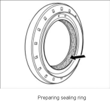 1. Fill the space between the dust and sealing lips on the new sealing ring with grease).