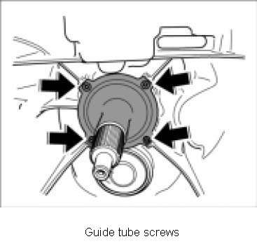 2. Remove guide tube for release bearing. To do this, unscrew four fastening screws -arrow-.