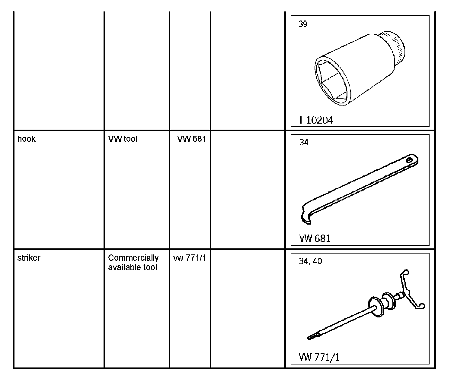 3. Remove flange with shop made tool and striker vw 771/1.