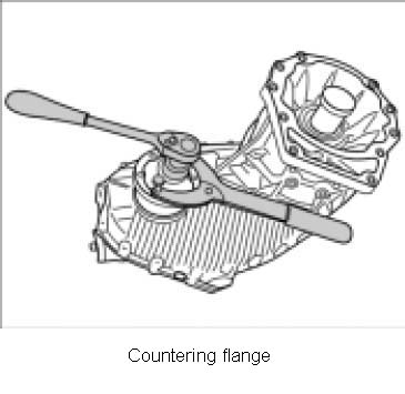 1. Unscrew collar nut of output flange with special tool socket t10204. To do this, block flange with special tool arm bracket 3435.