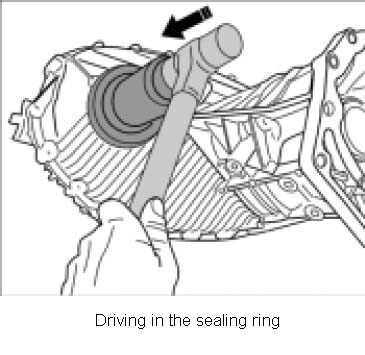 1. Drive in new sealing ring with special tool pressure piece T10185.