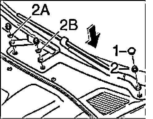 1. Open the bonnet and remove the cover cap "1".