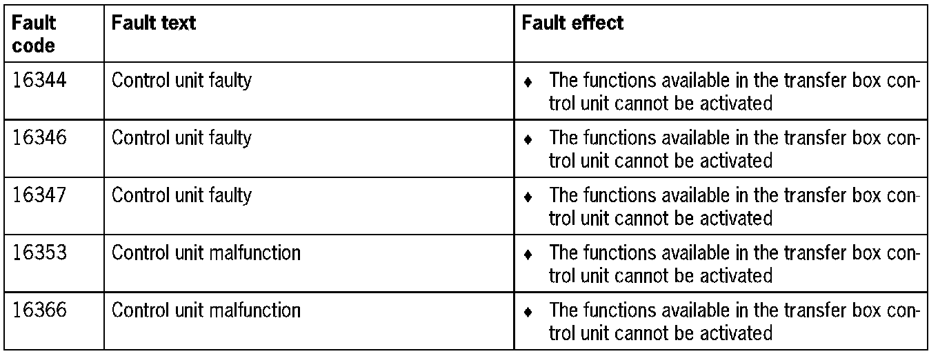 Fault Overview - Transfer Box Control Unit