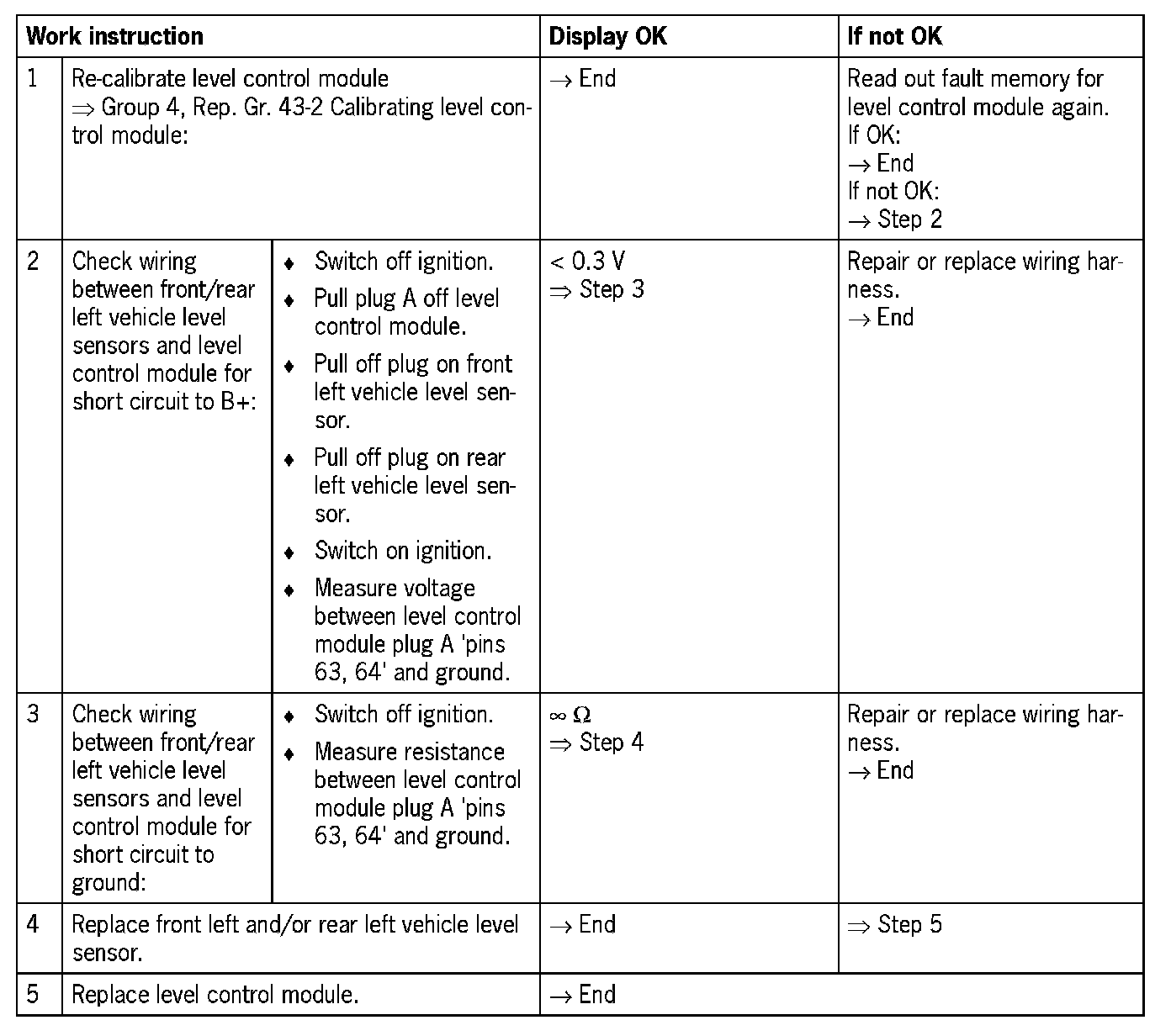 - Vehicle level sensors need to be calibrated --> Group 4 - Running gear (Rep. Gr. 43-2)
